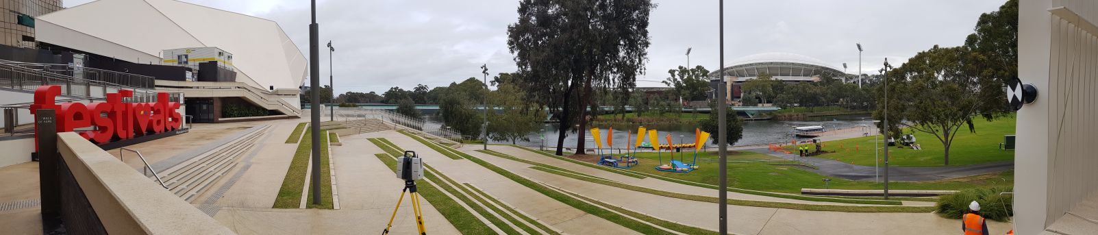 Adelaide is a beautiful city! Our surveyors have enjoyed working around the Festival Centre, just off King William St, Adelaide. The first image is a photo, the next two are images produced from the point cloud produced from our 3D Laser Scanner.